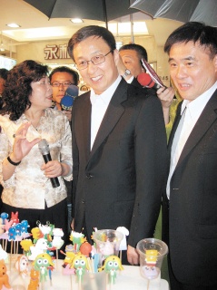 可能是晚宴都還沒消化,韓正來到夜市并未品嘗任何小吃,只有喝了一小杯茶葉攤商的奉茶,夜市內一家藝品店老板戴忠泉送給韓正一只石刻作品,象征“時時好運、節節高升”,郝龍斌在旁強調“臺北市民就是這么熱情”,韓正笑著回應說:“全都感受到了!”