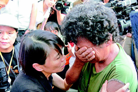 另外幾個(gè)地方,同樣有許多聲淚俱下的災(zāi)民,她依然不斷輕撫災(zāi)民的肩、背,撫慰大家:“我們一起面對(duì)困難,要堅(jiān)強(qiáng)、勇敢地站起來(lái),走出難關(guān)。”