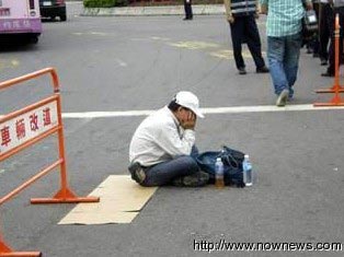 眼見靜坐人數減少,臺北市警方開始進行柔性勸導,希望靜坐民眾都能往凱道移動,將中山南路景福門路段凈空,給周一早上趕上班民眾一個方便,不過現場有一位民眾,認為自己已經坐在凱道上,所以并不愿意離開,就連民進黨糾察隊前去勸導,也無動于衷,對照靜坐大隊,儼然成為一個“靜坐釘子戶”。