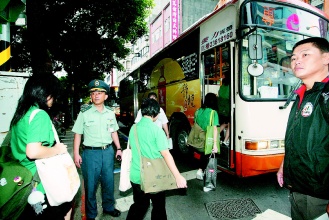 郝龍斌上午巡視加開的免費接駁學(xué)生公交車,臺北市規(guī)劃,今天上、下學(xué)時間每3分鐘一班,接送教育大學(xué)、教大附小、弘道中學(xué)學(xué)生上下學(xué),清晨第1個班次大約在6點35分發(fā)車。