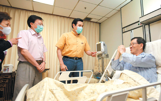 中新網5月25日電 據“中央社”報道,馬英九24日晚間偕同臺當局“行政院長”劉兆玄前往臺北榮民總醫院,探視進行肺部腫瘤切除手術的蕭萬長,馬英九希望蕭萬長安心靜養,早日康復。