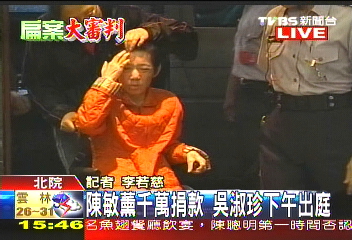 中新網(wǎng)6月16日電 綜合臺(tái)灣媒體報(bào)道,陳水扁夫人吳淑珍與馬永成十五日在法庭上對質(zhì),兩人對二○○五年縣市長選舉時(shí),中信金前副懂事長辜仲諒到底捐多少錢給參選臺(tái)北縣長的羅文嘉,說法不一。吳淑珍說辜仲諒另外給羅文嘉兩千五百萬元,馬永成則說,辜仲諒在他特別拜托下,在全部捐款中,指定一千五百萬元給羅文嘉。
