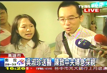 而原本在民進黨高雄市黨部協助提供法律咨詢的陳致中,在聽聞母親因為血壓過低緊急送醫后,也隨即趕往醫院探視。