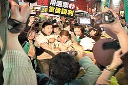 馬英九拜票藍綠隊伍相遇 短兵相接混戰5分鐘(圖)
