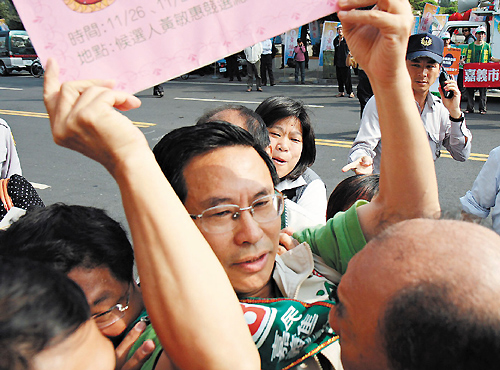 中新網(wǎng)11月25日電 據(jù)臺灣《聯(lián)合晚報》報道,臺灣“三合一”選舉活動正式起跑,民進黨嘉義市長候選人涂醒哲二十五日上午十點到國民黨嘉義市長候選人黃敏惠競選總部下戰(zhàn)帖,要求公開辯論,雙方發(fā)生激烈沖突,所幸無人有明顯外傷。
