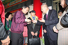 吳敦義在拈香祝禱期間,在大佛風景區內的大雄寶殿廣場旁親自種下菩提樹,并發放888個福袋給前來游玩的民眾。