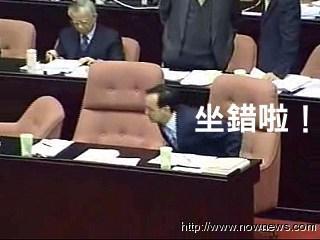 首度坐上“閣揆”大位的朱立倫,神情似乎陷入了長考,不過,幾秒鐘過去之后,突然看見朱立倫像是被針扎到一般,突然地抬起屁股、“彈”到旁邊的自己的座位,畫面相當(dāng)有趣。