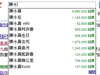 若以同樣方式搜尋陳水扁,在Google上就會出現“判決書”、“起訴書”等建議搜尋條件;李登輝卸任已久,最新的搜尋建議竟是“李登輝吃小火鍋”,原來是李去年到餐廳享用涮涮鍋,經過媒體報道后,引起網友興趣,紛紛上網搜尋,看看李究竟是到哪一家涮涮鍋用餐。