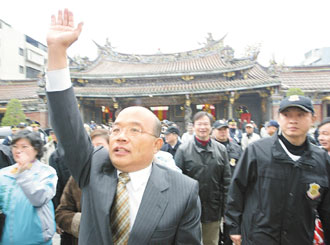 中新網3月3日電 據臺灣TVBS報道,臺當局前“行政院長”蘇貞昌于3日上午11點到臺北市保安宮參拜,神情肅穆,在神明見證下宣布角逐臺北市長。