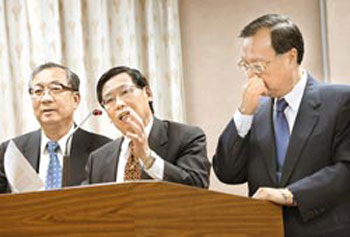 臺“立院”5日審查“考績法”,官員各唱各調,讓“立委”直搖頭。 圖片來源:臺灣《中國時報》