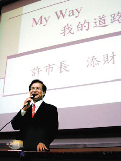 許添財本來想與學生談市政規劃,后來話鋒一轉說“現在講這些沒用了”,未來至少4年不必再談。演講后記者追問他是否暗指4年后將再出馬角逐市長,他則笑而不答,只表示一切都在考慮當中。