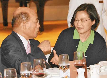 蘇貞昌下午出席臺大法律系講座“談法律人的政治路”,針對黨內勸進蔡英文參選新北市長聲浪,做上述表示。