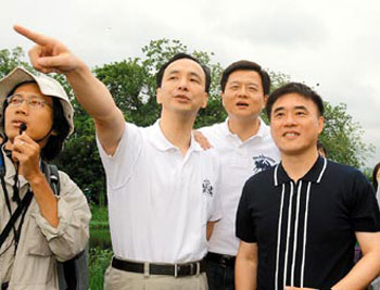 中新網5月31日電 據臺灣《聯合報》報道,臺北縣長周錫瑋30日邀臺北市長郝龍斌、新北市長參選人朱立倫訪視臺北縣浮洲濕地,為年底選舉造勢,互勉要把淡水河整治得更干凈。郝龍斌對三人合作形成“郝錫立(好犀利)”表示,“第一次聽到,不錯呀!”,周錫瑋不忘補充廣東話叫“猴塞擂呀!”