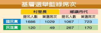 此外,對于基層選舉,民進黨也有所斬獲,12日晚初步統計選舉結果,民進黨村里長部分由44席小幅成長為49席,鄉鎮市民代表則由83席大幅成長為170席。