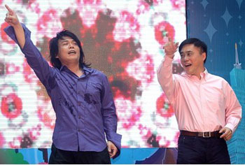 郝龍斌與藝人伍佰大跳花朵舞 宣傳花博會(圖)