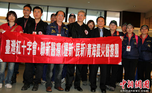 中新社桃園機場4月18日電(記者 董會峰 羅欽文)18日上午9時許,臺灣紅十字組織醫療團搭乘華航CI641班機啟程,經香港、北京轉機,赴青海西寧協助救治傷員。