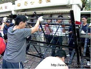 據(jù)臺灣東森新聞報(bào)道,一大早高雄“高分院”工作人員忙著在法院周邊圍墻外架設(shè)一道道路障,高雄“高分院”看起來就像是座落在銅墻鐵壁當(dāng)中,而這是為了因應(yīng)16日高雄市長選舉官司二審即將宣判,高雄“高分院”為預(yù)防有心人士鬧場所采取的預(yù)防措施。