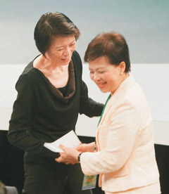 相對于周美青,長年跟著謝長廷南征北討選舉場的游芳枝,一身粉紅色套裝現(xiàn)身婦女座談會,比起周美青職業(yè)婦女形象,她多了些雍容的貴婦氣質(zhì),卻又顯得溫柔婉約,提起各種政見應(yīng)答如流,熟稔的程度絲毫不輸謝長廷。
