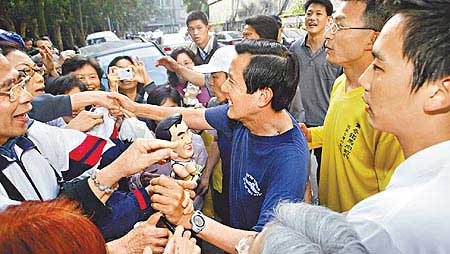 夾在馬迷當中的馬英九連簽名筆都快拿不住,他面有慍色突然扮起小學生風紀股長大喊:“我數到5再不排好隊,我就走了。”這招顯然對馬迷起不了作用,最后馬英九一一為各人簽名,但氣得嘴里直嘟囔:“我明天開始不簽了。”