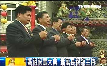 身為嘉義子弟的蕭萬長(zhǎng),在家鄉(xiāng)奉天宮感性致詞,感謝媽祖的保佑、民眾的支持,讓“大選”順利進(jìn)行,并祈求兩岸和平。