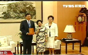 臺(tái)灣海基會(huì)董事長(zhǎng)江丙坤上任伊始拜訪海基會(huì)前董事長(zhǎng)辜振甫的遺孀辜嚴(yán)倬云。(圖:臺(tái)灣TVBS)
