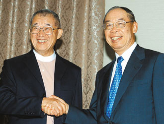 王建煊(左)拜會(huì)錢復(fù)(右)。(圖:臺(tái)灣《聯(lián)合晚報(bào)》)