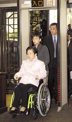 臺北地方法院審理機要費案,今日再度傳喚吳淑珍出庭,圖為吳淑珍2006年12月15日第一次出庭時通過地院大門。(資料照片)
