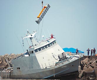 中新網9月27日電 臺“光華6號”導彈快艇因執行“漢光演習”任務而意外擱淺在嘉義布袋港外,經過一天搶救還是無法拖離,海軍方面26日只得先找來吊車把4枚導彈先拆除、吊走,一方面確保導彈安全,一方面減輕重量,希望能在漲潮時讓快艇脫困。