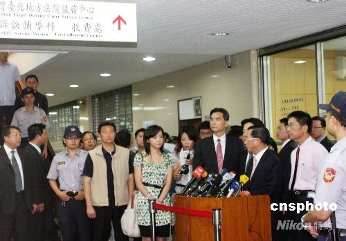圖為陳水扁在出庭應(yīng)訊后對媒體表達(dá)看法。不久的將來,他將面臨對其貪污的審判。 中新社發(fā) 黃少華 攝