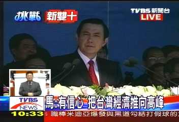 中新網10月10日電 馬英九今天(10日)在臺灣“雙十節慶”大典發表講話說,拼經濟是施政最優先工作;臺灣的經濟基礎很好,希望大家繼續來努力,疼惜臺灣、建設臺灣,相信一定可以渡過難關。