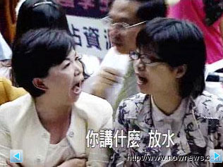 報道說,會議主席宣布休息協商,卻反而制造了藍綠雙方口水大戰的絕佳舞臺。占人數優勢的藍營決定按原定議程審理教育部門預算,沖突就這么發生。兩個星期前是打巴掌,這回拉扯近乎打群架,“立法院”儼然成為女人的戰場。
