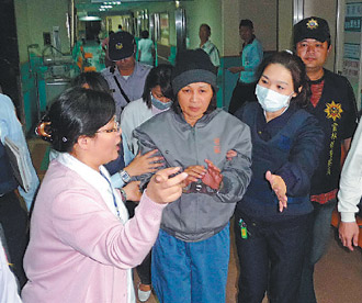 絕食的云林縣長蘇治芬12日晚再度因身體不適,送往虎尾若瑟醫院,堅持不躺推床,自己走進病房。圖片來源:臺灣《聯合報》