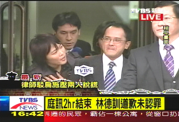 前陳水扁辦公室主任林德訓在20日下午2點半被傳訊,2小時后于下午4點40分結束庭訊,他道歉但未認罪。圖片來源:臺灣TVBS