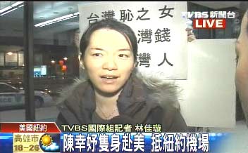 陳幸妤抵達紐約時候,機場有一對夫婦前來抗議,高舉著海報上面寫著“臺灣恥之女,請把臺灣錢,還給臺灣人”,隨后這對夫妻就被機場航警帶離現場。