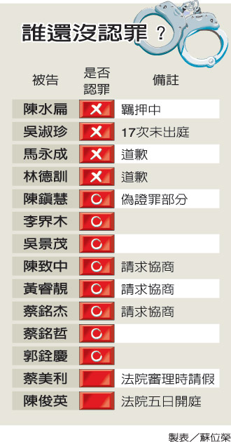 另外,陳水扁的左右手馬永成和林德訓雖沒有認罪,但對先前在法庭上作不實供述,公開向社會道歉;這個道歉意味著坦承部分的案情,對扁珍的涉案,當然會有一定的影響。
