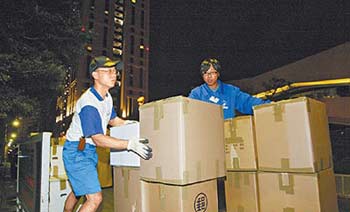 昨夜在寶徠附近,搬家工人將一箱箱貨品搬上車,分析應是陳致中搬家。