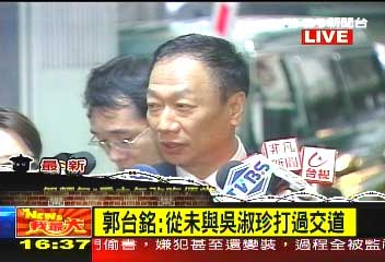 記者問:“關(guān)于吳淑珍陳報(bào)狀所述,3000萬的政治獻(xiàn)金,是由您這邊支付的嗎?”郭臺(tái)銘說:“我回答,沒有。”記者再問:“沒有捐款給扁家3000萬嗎?”郭臺(tái)銘重申:“沒有。”記者接著問:“那怎么會(huì)傳出這樣的說法?”郭臺(tái)銘面露無奈地說:“我也不曉得。”