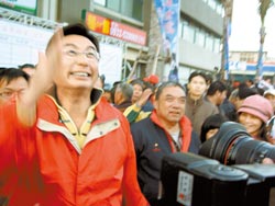 苗栗“立委”補選,以無黨籍身分競選的康世儒跌破眼鏡打敗國民黨提名的陳鑾英,當選后揮手向選民感謝支持。