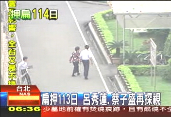 中新網4月22日電 據臺灣TVBS報道,陳水扁遭羈押第113天,昔日副手呂秀蓮再度前往探視。除了跟陳水扁報告玉山周報的發行狀況,也帶來319槍擊案的相關剪報。
