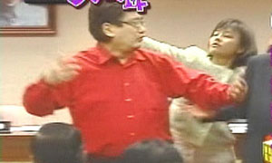中新網(wǎng)4月22日電 據(jù)臺灣TVBS報道,臺灣“立法院”今天再度出現(xiàn)火爆場面,國民黨“立委”李慶華講話時突遭民進黨“立委”邱議瑩偷襲,被甩了一個耳光。李慶華召開記者會譴責(zé)民進黨是暴力黨,表示將對邱議瑩提告。