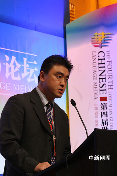 最后一點,就是海外華文媒體怎么樣跟中新社共同一塊做一些事情。我上午就說過了,中新社牽頭,我們可以建立一個網(wǎng)絡(luò)平臺,也許一個星期就可以做出來,鏈接式的,把世界華文媒體,用點擊的方式,比如西班牙,一點擊,當?shù)氐膱蠹埦涂梢猿尸F(xiàn)出來,這給中國人華文媒體在海外交流信息是一個很好的平臺,同時中新社也可以形成一個把大家結(jié)合起來的團隊,共同去做這件事情,同時還有一些商業(yè)的合作機會,包括土地、房屋買賣和旅游。假設(shè)我去歐洲旅游的時候,我只要是有這么一個平臺,我一點擊就可以從那邊拿到東西。再一個,大家在海外去做華文媒體的時候,做LOGO新聞的時候,通常會東抄西抄,但是互相抄的時候就有重復(fù)了,我隨便看一下,假設(shè)是德國的報紙我看得津津有味,我在美國呆著,從來不知道德國的報紙是什么樣。我基本上是這么幾點,和大家分享一下中國的問題和可以操作的解決方式。謝謝。