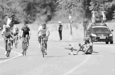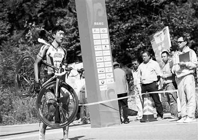 昨天在本溪進行的第十二屆全運會自行車男子公路個人賽中,解放軍隊選手吳佩倫在臨近終點沖刺時不慎摔倒(見上圖),但是他并未因此放棄比賽,而是扛著自行車走過終點線(見上圖),最終以4小時42分14秒的成績位列第26名。吳佩倫的行為,生動體現(xiàn)了永不言棄的體育精神,賽后他說:“我到這里,不是來聽發(fā)令槍的,而是要沖過終點線的。”