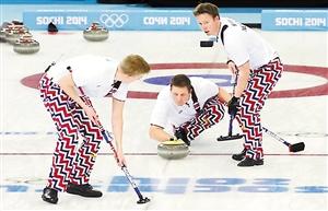 挪威冰壺隊(duì)因?yàn)樗麄兠繄?chǎng)必?fù)Q一條時(shí)髦又極其艷麗的運(yùn)動(dòng)褲,在全球社交網(wǎng)絡(luò)上一夜爆紅。美國(guó)《今日體育》報(bào)甚至評(píng)論道:“還比什么賽,挪威隊(duì)已經(jīng)贏了!”