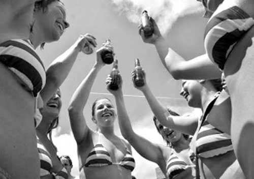 女球迷不僅看球看帥哥,還要搶歐洲杯的風頭。比賽期間一場“無上裝女足比賽”在維也納多瑙河邊舉行,美女們在身上彩繪了兩隊的球衣。很多男球迷看這個比看歐洲杯興趣還大:“如果因為看這個而趕不上歐洲杯,那也沒什么!”