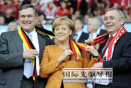 默克爾是2005年上任的德國第一位女總理,她是德國政壇公認(rèn)的、以冷靜理性著稱的“鐵娘子”,可時下卻為足球癡狂。