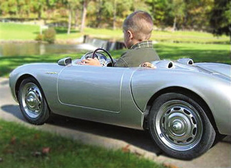 如今,9歲的布魯克林已經擁有了自己的第2輛豪車——超小精致版保時捷跑車,這輛車是保時捷手工制造的,停車場還為小跑車專設停車位。可別小瞧了這輛超小精致版保時捷跑車,那可是真刀真槍喝油的豪華跑車!這輛保時捷價值近5萬鎊,柴油驅動。小車雖小,但與真正的汽車沒有什么區別,不過小布魯克林不能用這輛豪華玩具車載他的小女朋友去兜風,因為是單座的嘛。