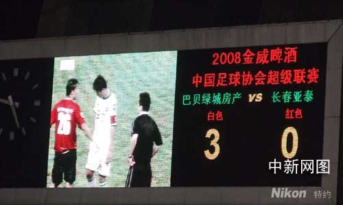 第74分鐘,替補上場的綠城13號及興華,接到隊友的邊路傳中后,右腳抽射將球打入。及興華上場不到10分鐘就幫助浙江綠城隊將比分擴大為2-0。第82分鐘,浙江綠城隊趁著長春亞泰隊后防空虛的機會再次展開反擊,26號閻嵩輕松將球送入到長春亞泰隊的大門,浙江綠城3比0獲得勝利。(完)