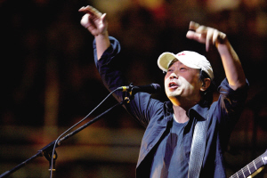 演唱會的曲目多以老歌為主,唱得歌迷情難自控。一不小心,就蓋過了老崔的聲音。《春節》《一塊紅布》《花房姑娘》《一無所有》,都是氣勢磅礴的大合唱。由于是四面臺,老崔在演出中肯定得背對著一邊的觀眾。為了公平,在演出進行到三分之一時,趁著桑巴亞單獨演出的機會,老崔和樂隊把樂器掉了個過兒,面向本來背對的觀眾。一些眼