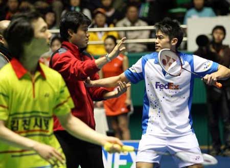 昨天結(jié)束的韓國羽毛球公開賽傳出了不和諧的聲音,中國隊(duì)男單頭號(hào)種子林丹在決賽中以1比2不敵東道主選手李鉉一,林丹險(xiǎn)些與李鉉一的教練、前中國男隊(duì)主帥李矛動(dòng)武。他憤怒地把手中的拍子砸向李矛,兩人幾乎要打架,幸虧旁人將他們分開。另外,中國隊(duì)丟掉了女單冠軍,小將盧蘭在決賽中不敵代表中國香港隊(duì)的前中國隊(duì)主力周蜜。