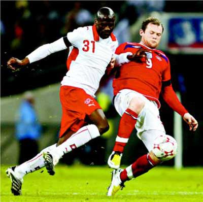 盡管采用了“四五一”的單前鋒陣型,但魯尼獲得的射門機會并不少,下半時初段他就三次射門,其中一次單刀、一次吊射和一腳遠射。可惜曼聯(lián)前鋒并非頂級射手,浪費了本特利兩次時機和精準度都極佳的傳球。第58分鐘,巴內(nèi)塔抓往英格蘭右后衛(wèi)布朗站位的一次失誤直傳其身后,德迪約克乘虛而入,一腳低平的斜射中的,替瑞士扳平了比分,也讓屢屢浪費機會的主隊受到了懲罰。出人意料的卡佩羅面對失球出奇得平靜,他甚至為年僅19歲的德迪約克鼓掌。